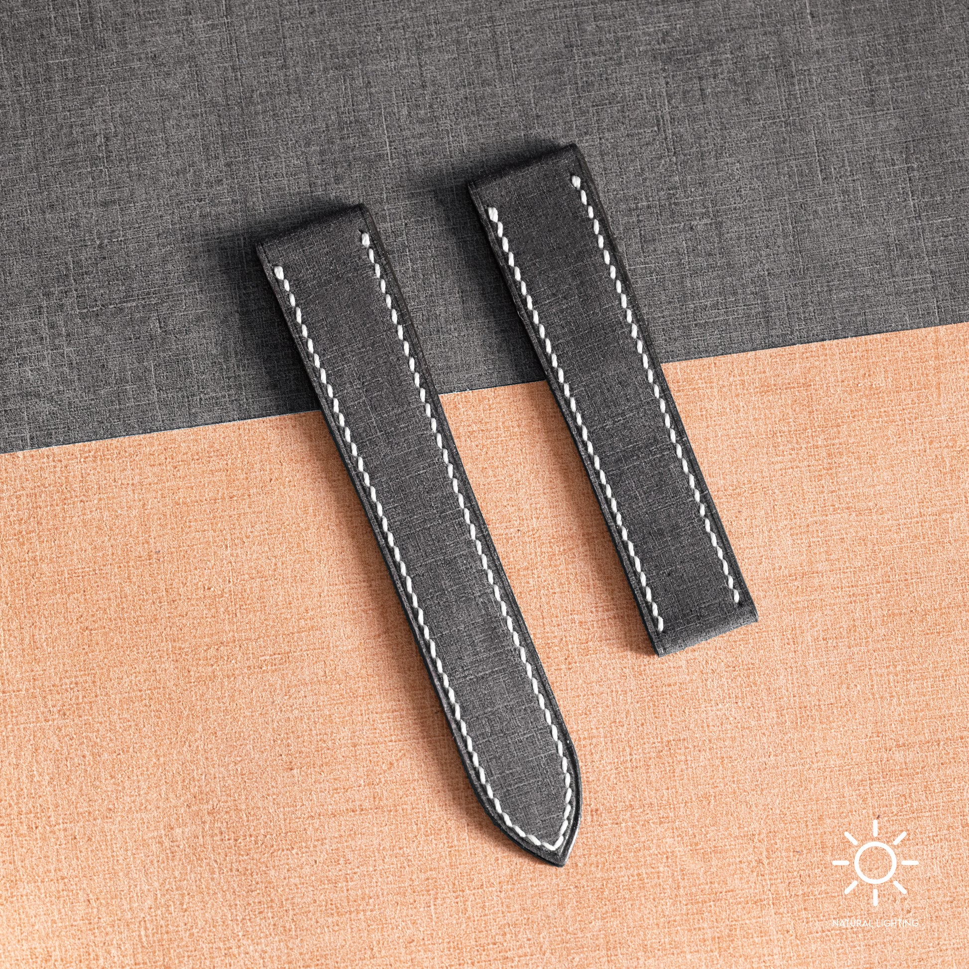 Black Babele Single Fold Watch Strap for Cartier Deployant Clasps - White Stitch