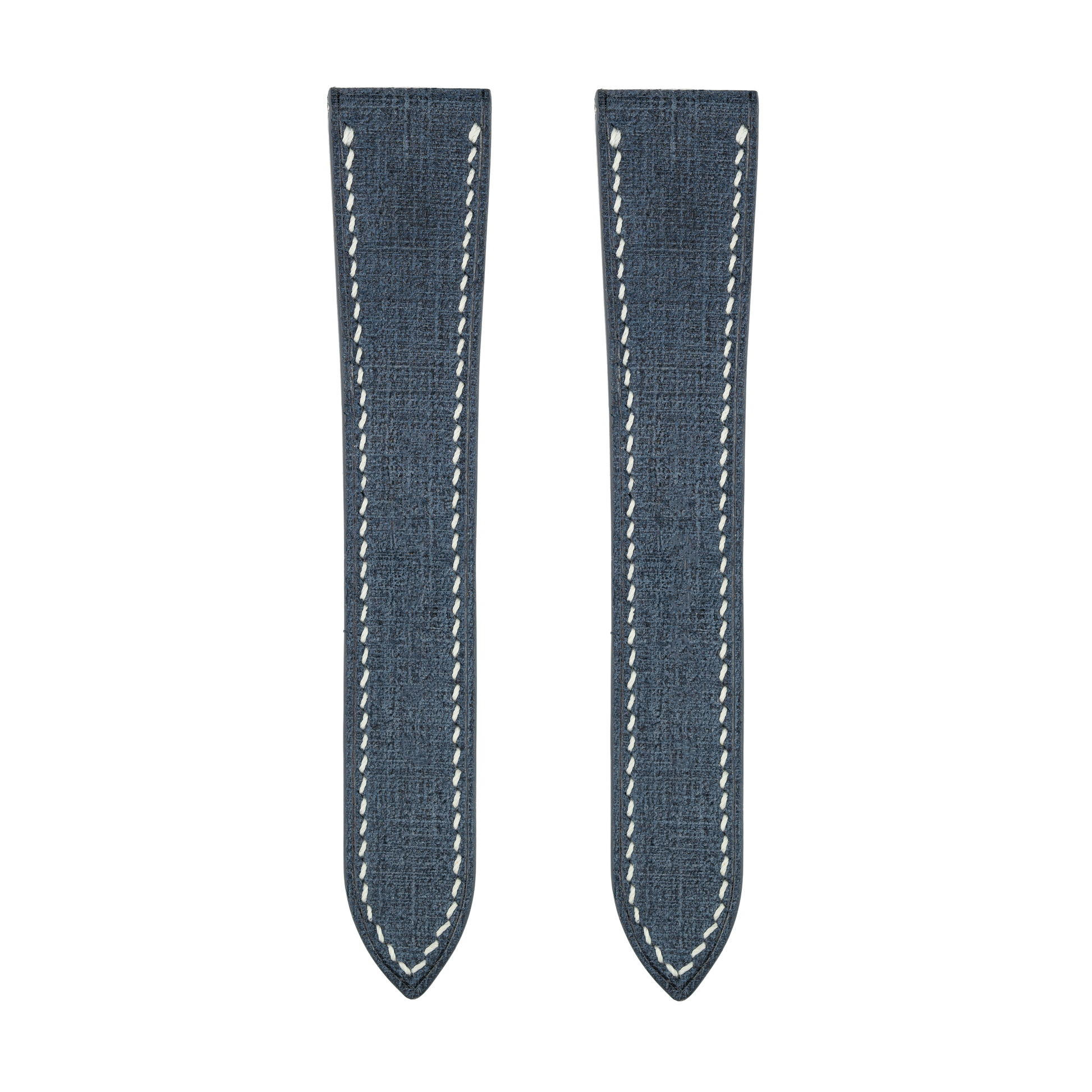 Blue Babele Double Fold Watch Strap for Cartier Deployant Clasps - White Stitch