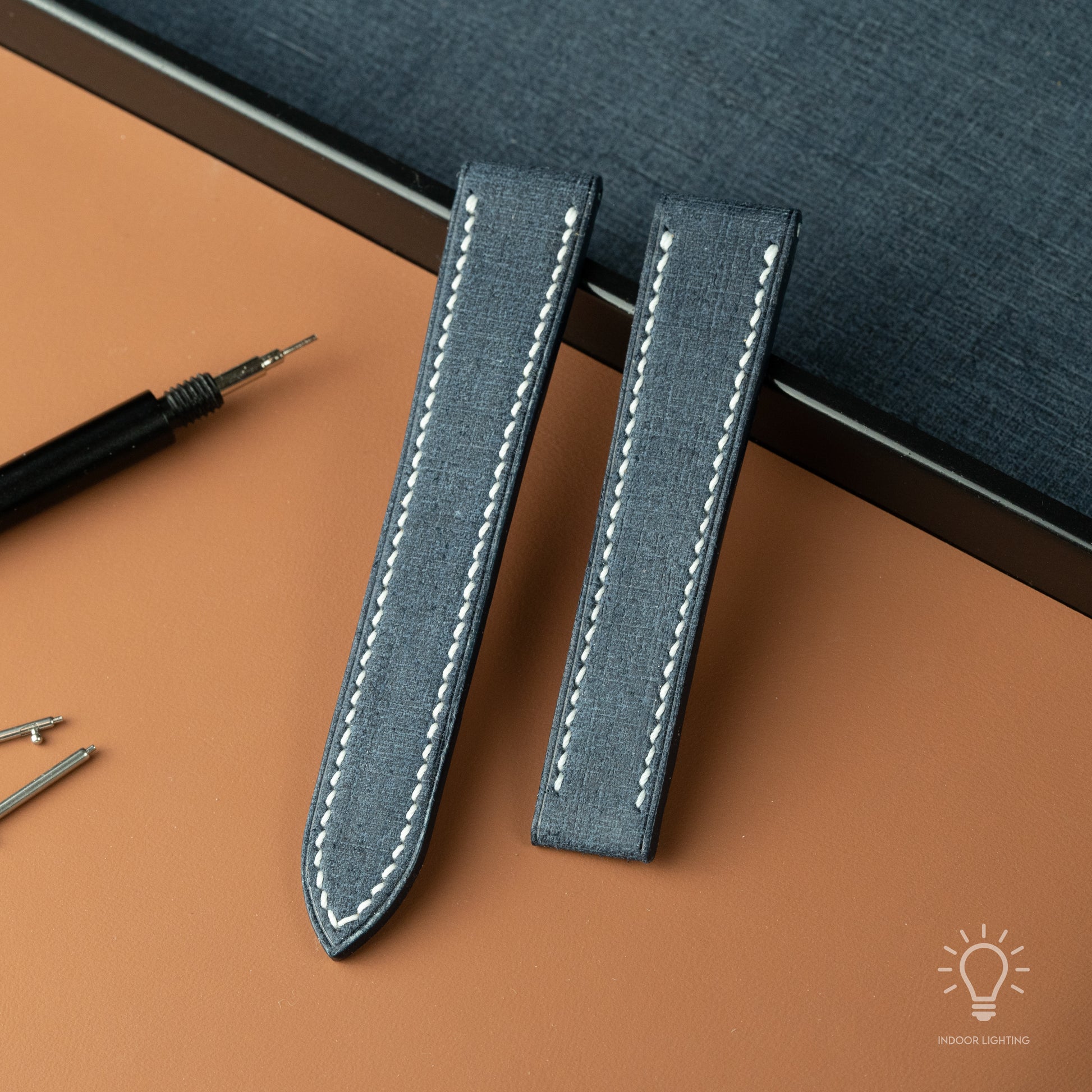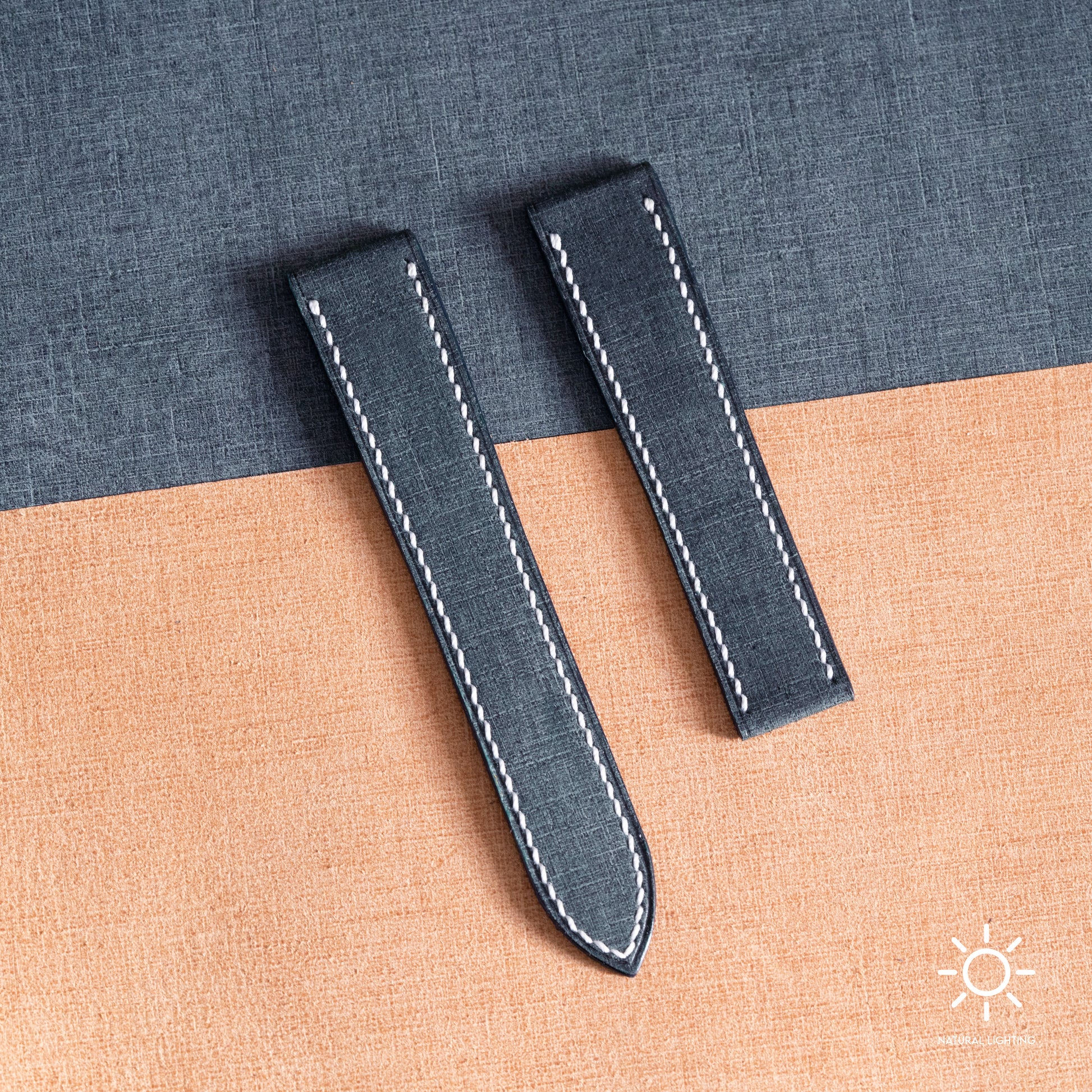 Blue Babele Single Fold Watch Strap for Cartier Deployant Clasps - White Stitch