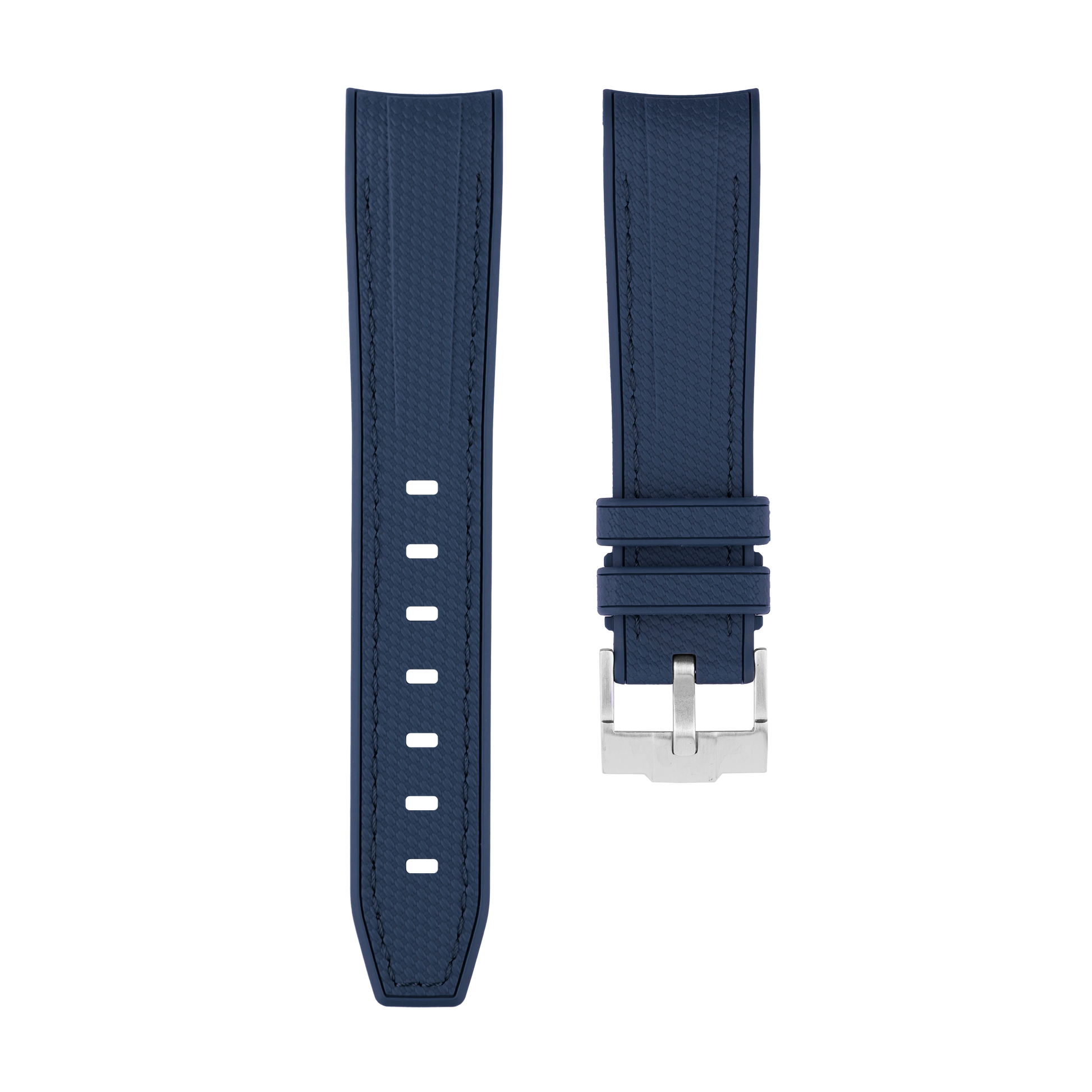 Upgrade your Omega Speedmaster Moonwatch with our premium curved-end stitched rubber strap, designed for a seamless integration with your timepiece. Crafted from high-quality FKM rubber, this strap offers exceptional durability, flexibility, and resistance to heat, moisture, and long-lasting comfort in any environment. Its ergonomic design ensures a snug yet breathable fit, while the textured finish and stitches complement the Moonwatch’s iconic look. The strap integrates seamlessly with the watch’s case, providing a sporty yet sophisticated upgrade.Details