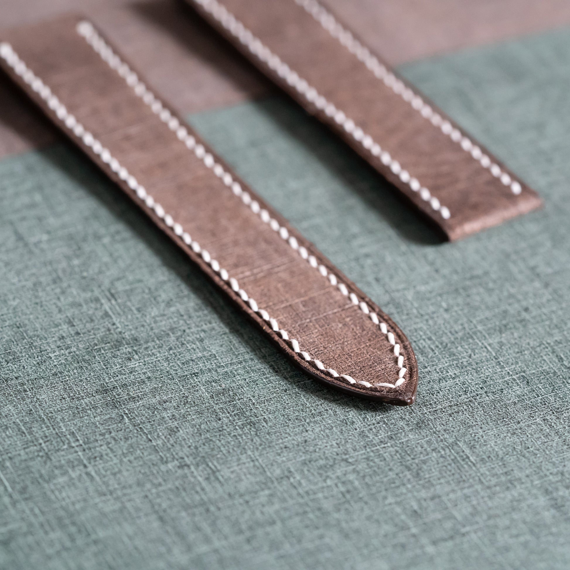 Crafted from premium leather sourced from the Tempesti tannery, the Babele leather strap is distinguished by its linen-like texture and slightly waxy feel. The surface has a natural, understated appearance that balances rugged character with detail – making it versatile for both dressy and casual occasions. Each strap is cut, stitched, and finished entirely in-house at lugpal, ensuring exceptional quality and durability. Over time, the waxed finish develops a subtle patina, giving your timepiece a strap that grows more characterful with every wear.