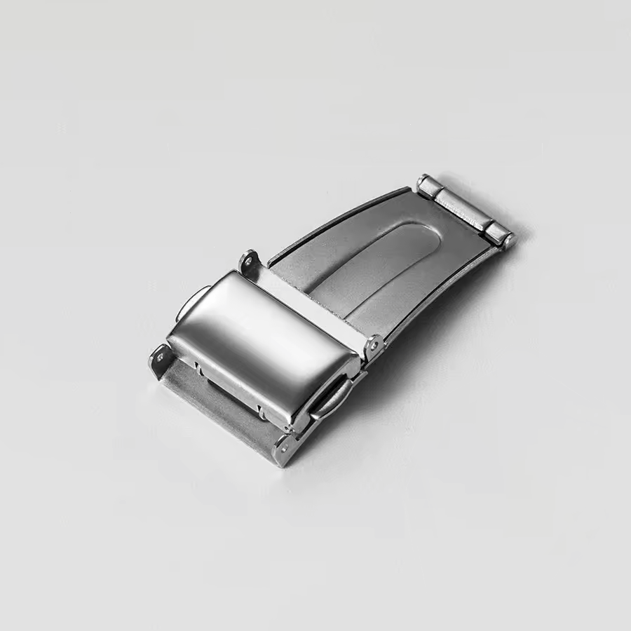 A stamped stainless steel deployant clasp designed for fixed-length straps. It offers a secure, comfortable fit and helps preserve your strap by minimizing bending and wear. Simple to install, durable, and built for everyday reliability.