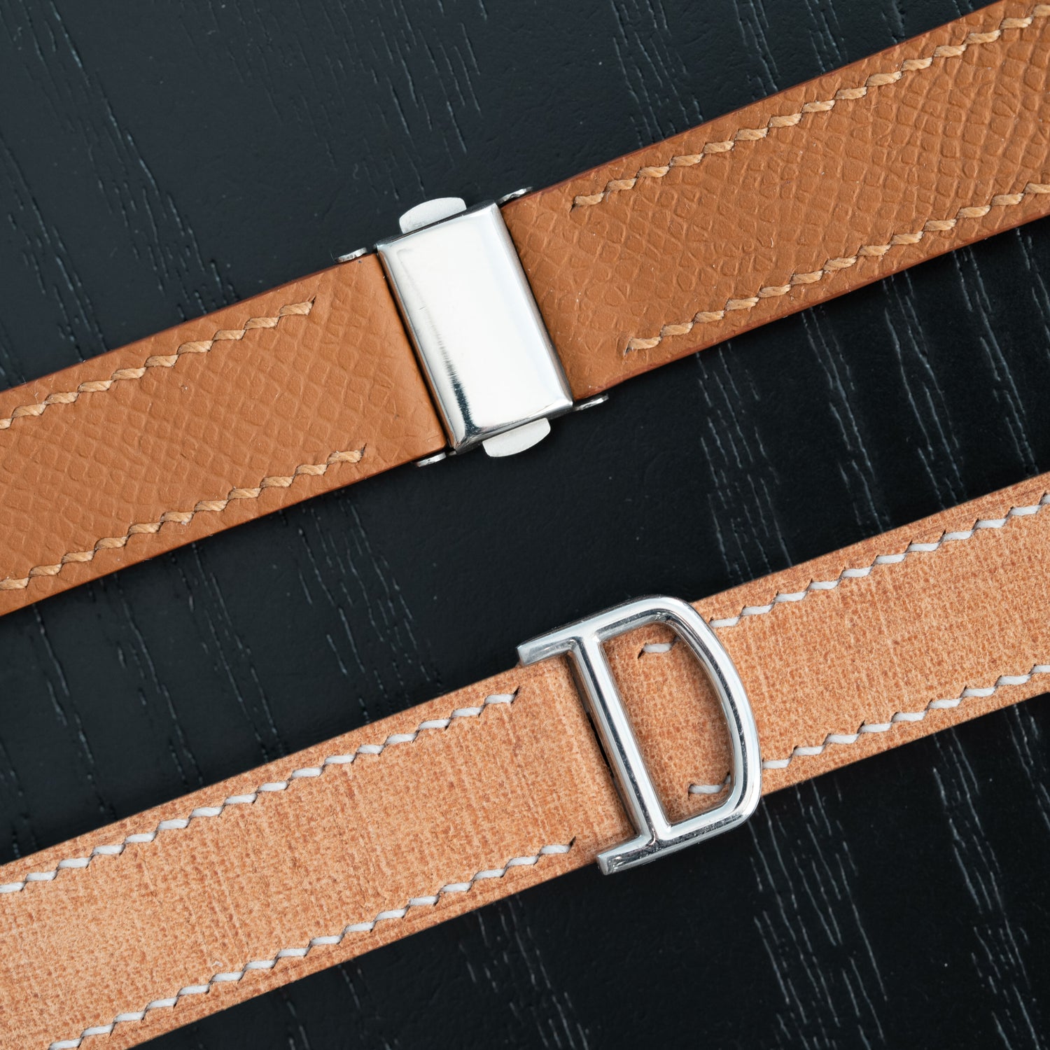 Each strap is hand-sewn in-house using the traditional saddle-stitch method. Unlike machine stitching, which relies on a single thread, saddle-stitching uses two needles working in opposite directions through every hole, creating a stronger, more durable seam that won’t unravel even if one stitch is cut. This time-honored technique not only ensures longevity but also adds an artisanal touch to every strap.