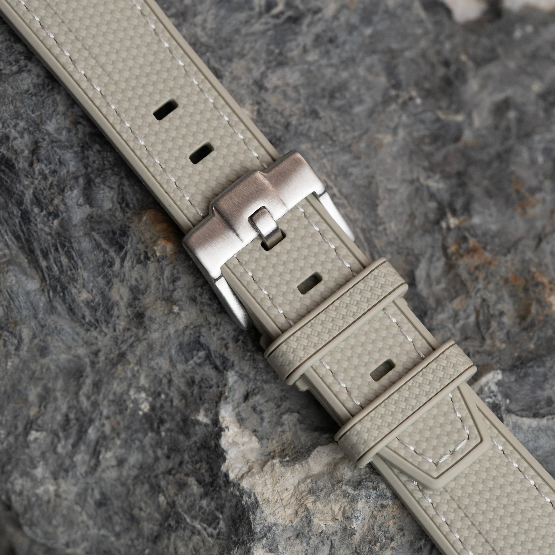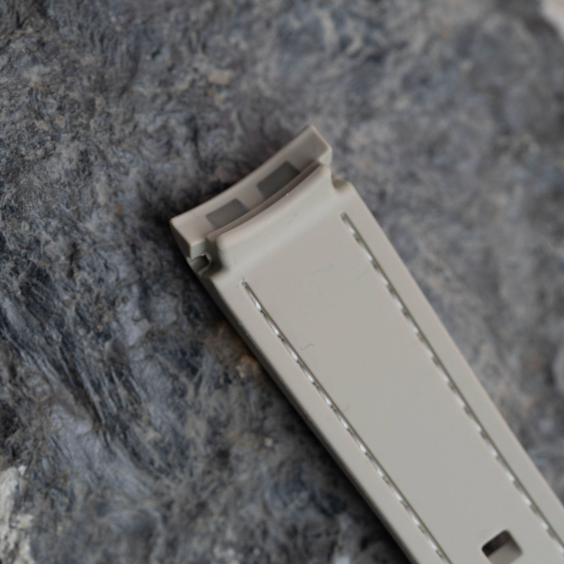 Upgrade your Omega Speedmaster Moonwatch with our premium curved-end stitched rubber strap, designed for a seamless integration with your timepiece. Crafted from high-quality FKM rubber, this strap offers exceptional durability, flexibility, and resistance to heat, moisture, and long-lasting comfort in any environment. Its ergonomic design ensures a snug yet breathable fit, while the textured finish and stitches complement the Moonwatch’s iconic look. The strap integrates seamlessly with the watch’s case, providing a sporty yet sophisticated upgrade.Details
