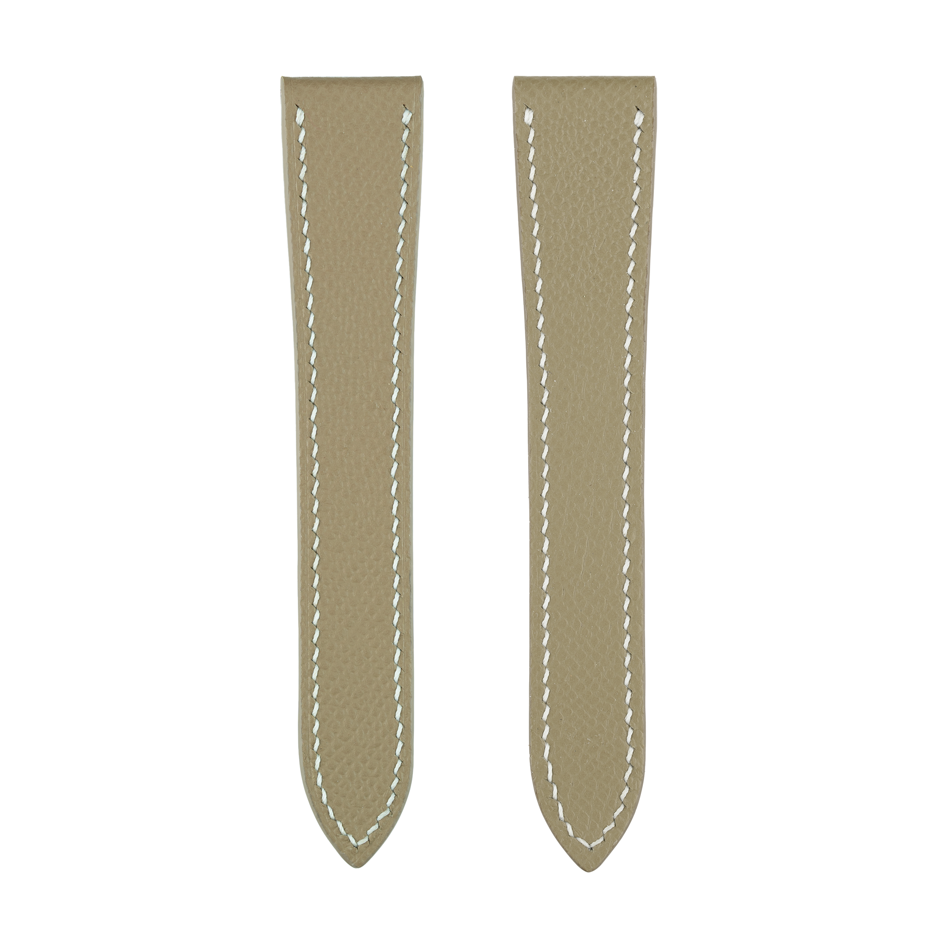 Taupe Epsom Double Fold Watch Strap for Cartier Deployant Clasps - White Stitch